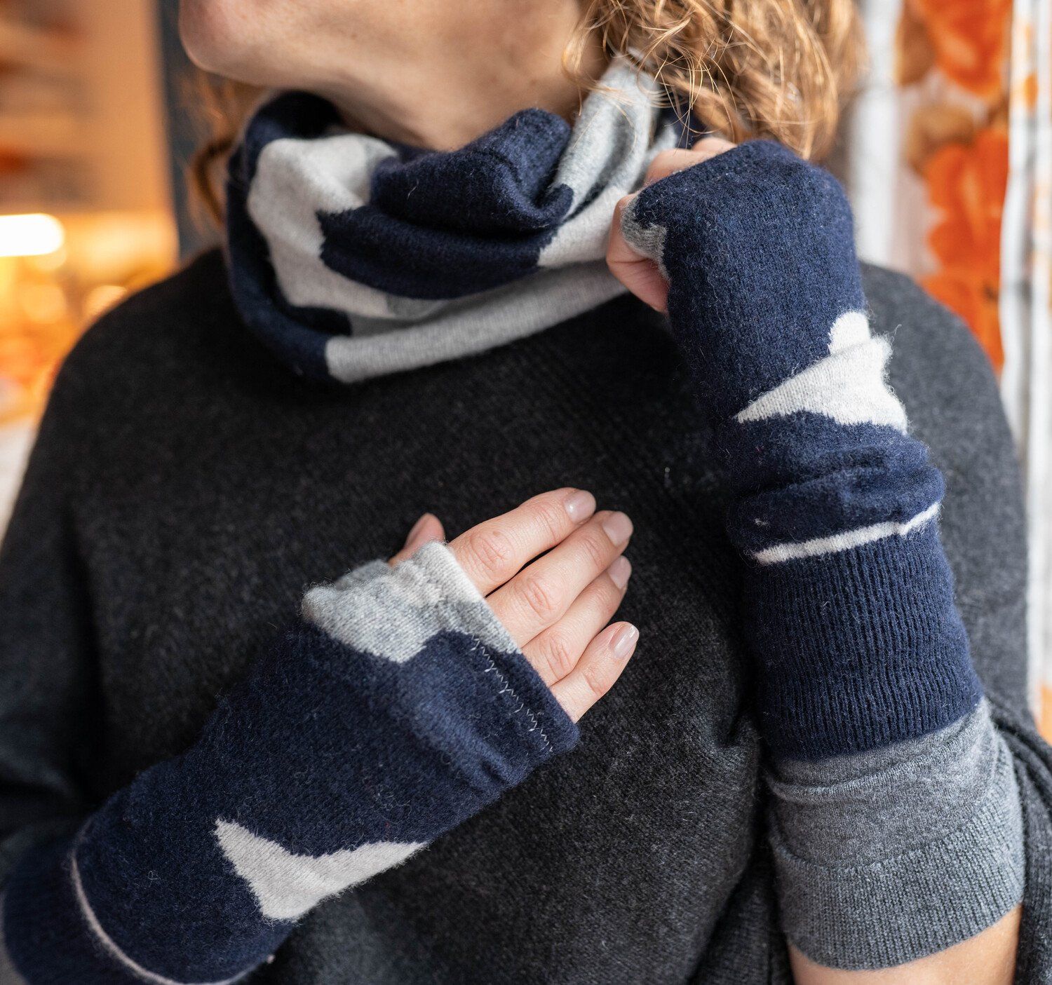 Upcycled from good quality cashmere sweaters and easy to care for, these wrist warmers are perfect for controlling your body temperature - indoors and out.